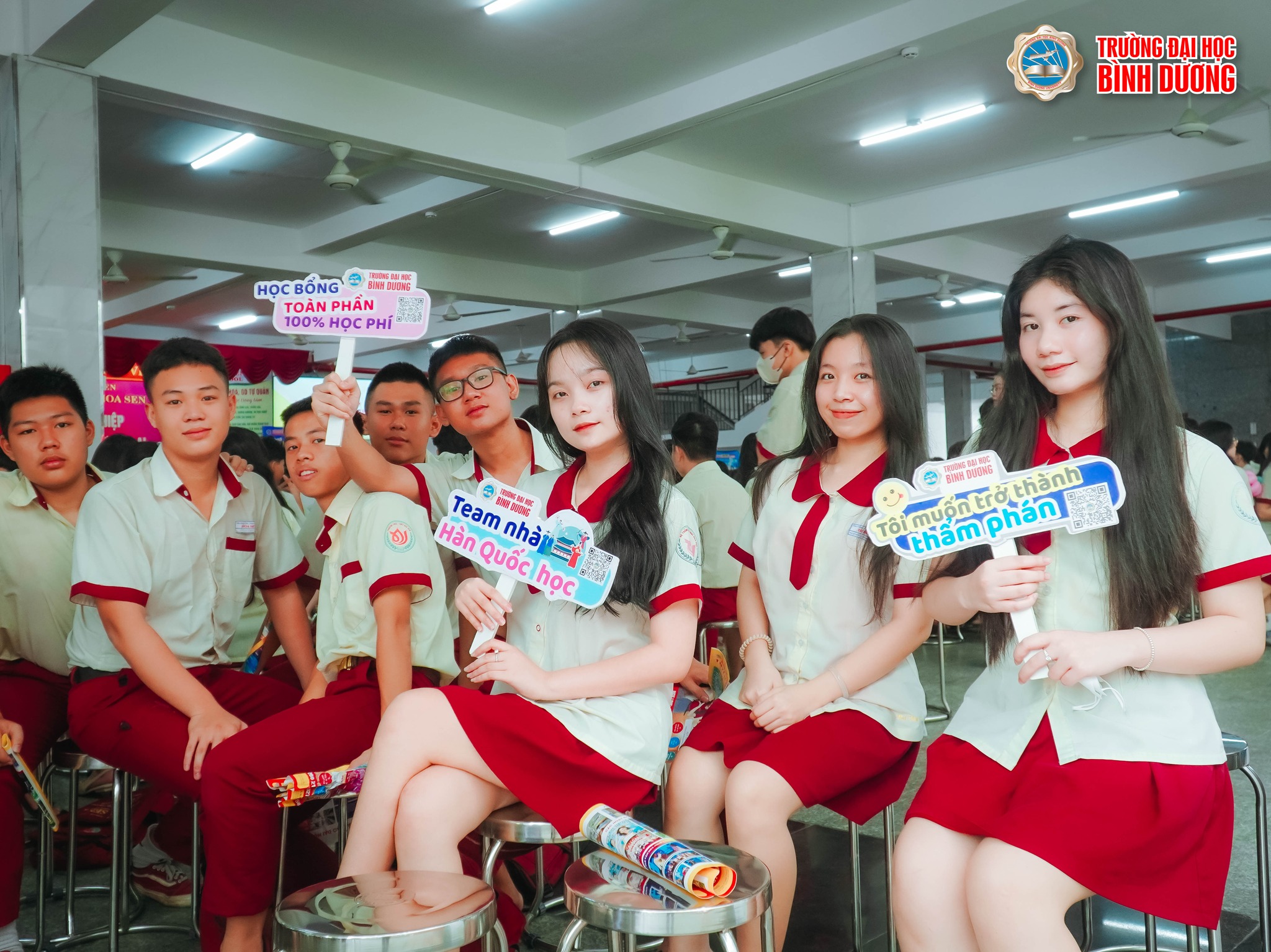 Trường Đại học Bình Dương đã trao 11 suất học bổng toàn phần (trị giá hơn 100 triệu đồng) cho học sinh lớp 12 có thành tích là đạt số điểm xét tuyển học bạ lớp 12 trên 26 điểm.