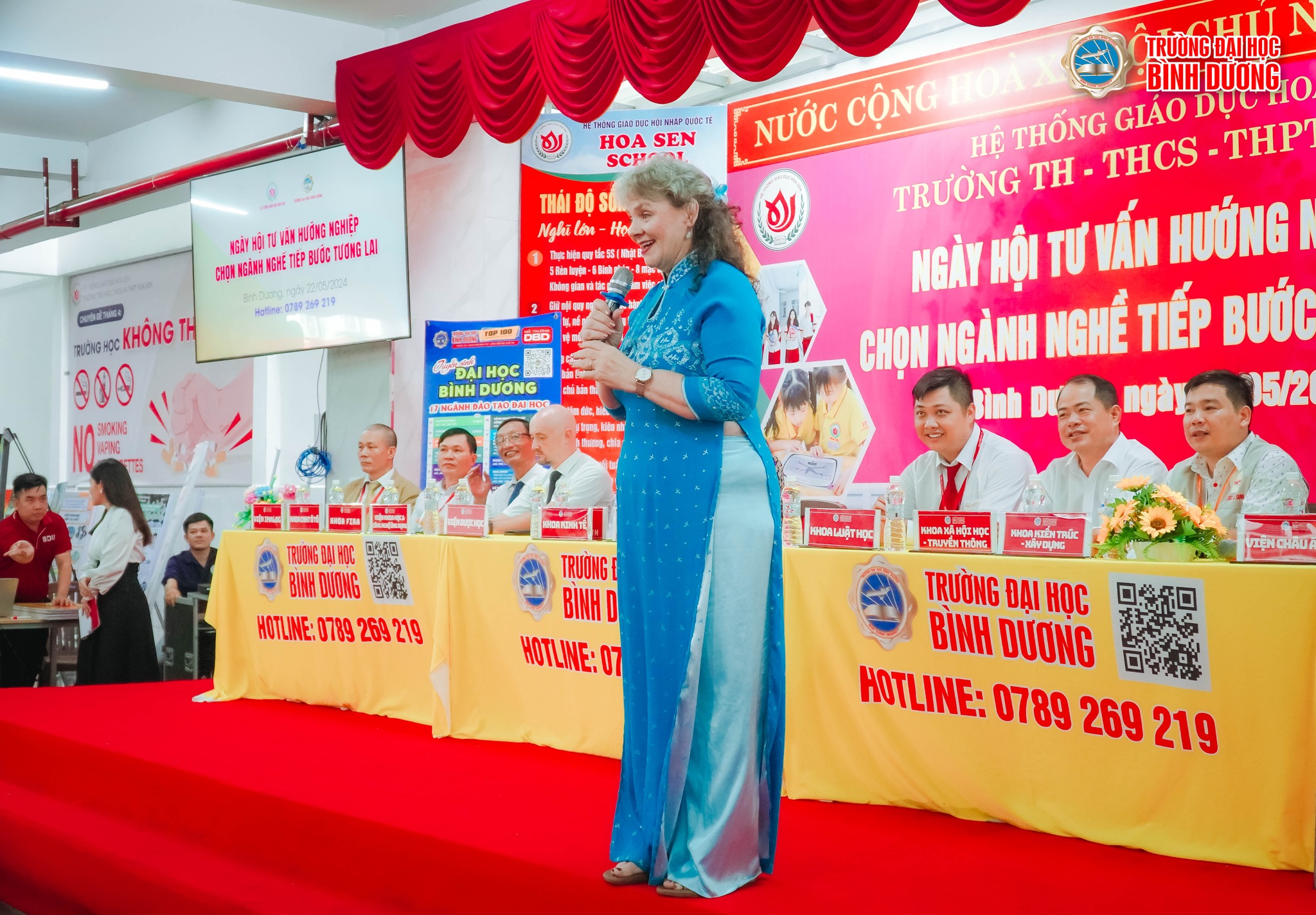 ️Tham dự Ngày hội, về phía Ban Giám hiệu Trường THCS -THPT Hoa Sen, có thầy Lê Quốc Doanh – Hiệu trưởng; cô Nguyễn Y Phụng và thầy Võ Xuân Phước – Phó Hiệu trưởng chuyên môn; thầy Dương Thế Lợi – Phó Tổng Quản nhiệm Nhà trường. Về phía Trường Đại học Bình Dương (BDU) có TS. Đỗ Đoan Trang – Phó Hiệu trưởng Thường trực kiêm Trưởng Khoa Kinh tế; PGS.TS. NGƯT Vũ Ngọc Bích - Phó Viện trưởng Viện IMALOG; GS.TS Phạm Văn Tất – Viện trưởng Viện Nghiên cứu & Phát triển Dược học; TS. Phạm Đình Chi - Trưởng Khoa Xã hội học & Truyền thông; ThS. Na Jong Keun - Viện trưởng Viện Châu Á học và cô Karen Hamilton Nguyễn - Viện trưởng Viện giao lưu văn hóa quốc tế cùng một số thầy/cô là đại diện các Viện/Khoa/Ngành của trường.