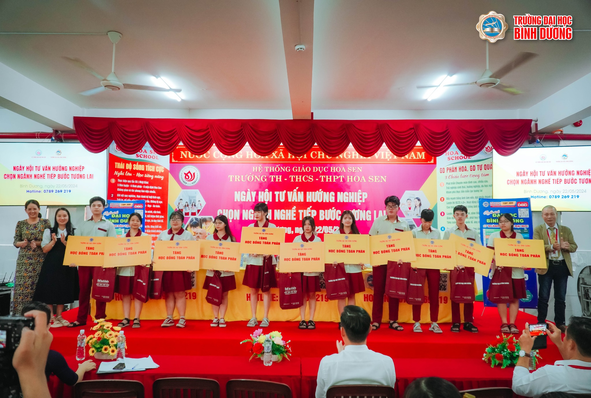 Ngày 22/5, Trường THCS - THPT Hoa Sen (TP. Dĩ An – T. Bình Dương) phối hợp cùng Đại học Bình Dương tổ chức Ngày hội “Tư vấn định hướng nghề nghiệp” cho hơn 700 học sinh khối lớp 11.